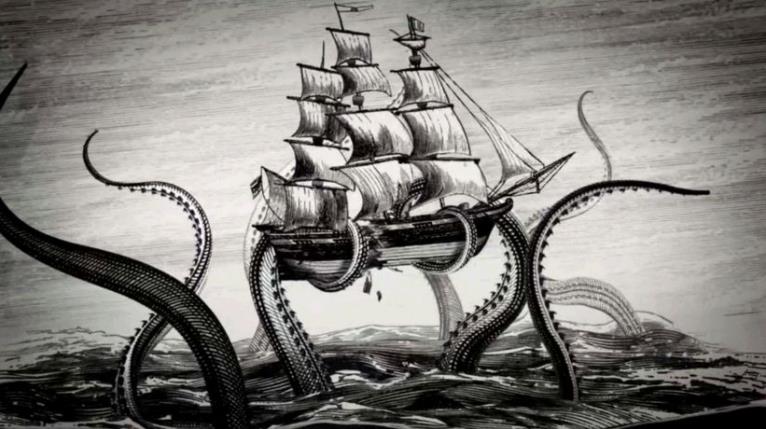 实际上关于它的传说并非完全是人类的幻想,18世纪晚期大航海事业飞速发展,有一段时间挪威海域,发生过数次海船神秘失踪事件,据幸存者描述他们遭遇了不明巨兽的袭击,一开始海怪的形象并非章鱼,而是更像鲸鱼的怪兽。