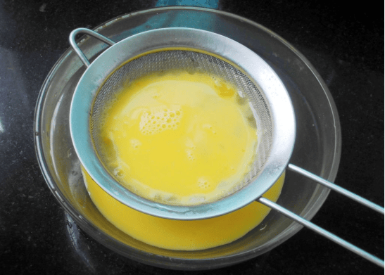 在对蛋液进行过滤的时候,最好给它过滤两遍,直到蛋液表面没有任何气泡出现以后,才可以上锅去对其进行蒸制,这可是蒸蛋不起蜂窝状的关键步骤。