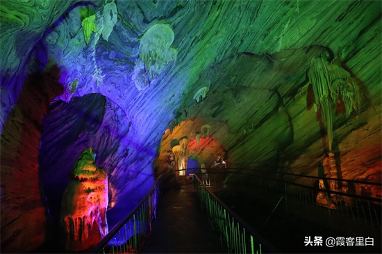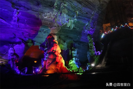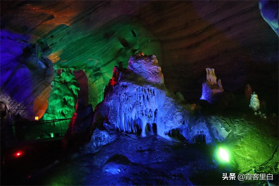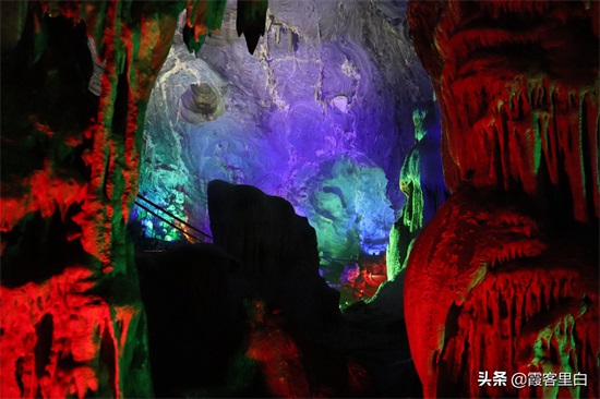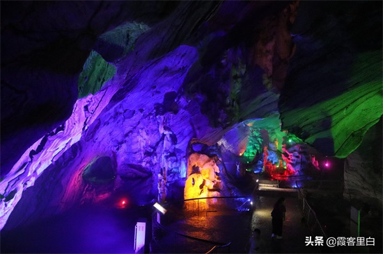 感觉走了很长时间,终于到达了溶洞里。洞里到处安置了彩色的LED灯光,显得非常魔幻。网上看其它溶洞景区的照片,大抵都是如此。