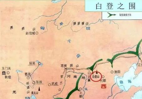 公元前201年(汉高祖六年),韩王信在大同地区叛乱,并勾结匈奴企图攻打太原。汉高祖刘邦亲自率领32万大军迎击匈奴,先在铜辊(今山西沁县)告捷,后来又乘胜追击,直至楼烦(今山西宁武)一带。时值寒冬天气,天降大雪,刘邦不顾前哨探军 刘敬的劝解阻拦,轻敌冒进,直追到大同平城,结果中了匈奴诱兵之计。刘邦和他的先头部队,被围困于平城白登山,达7天7夜,完全和主力部队 断绝了联系。后来,刘邦采用陈平的计谋,向冒顿单于的阏氏(冒顿妻)行贿,才得脱险。