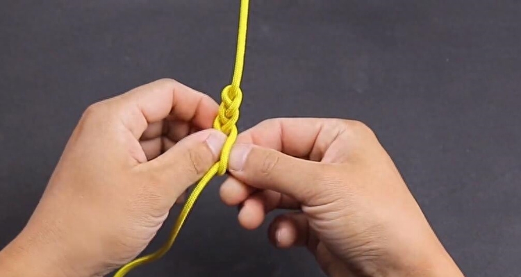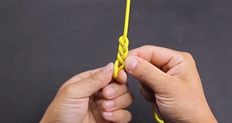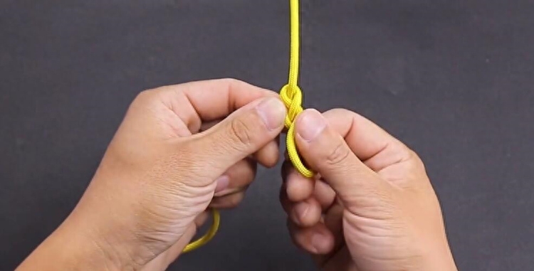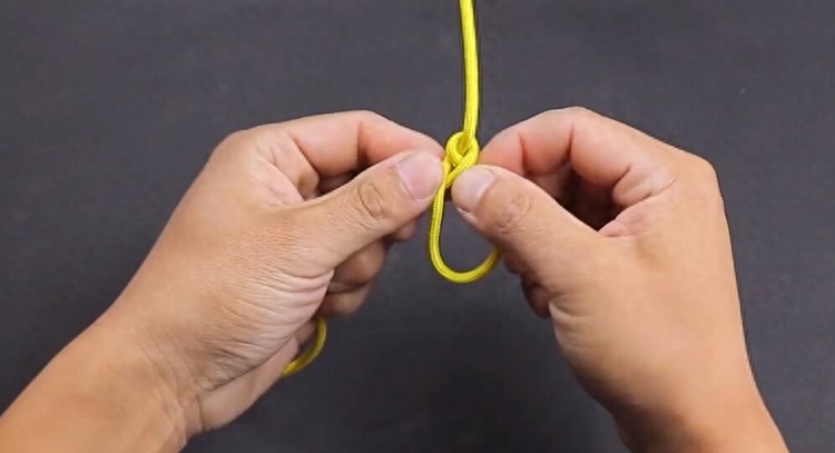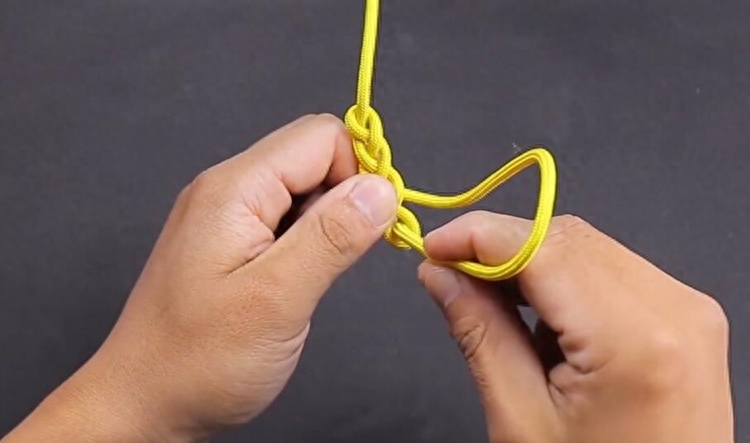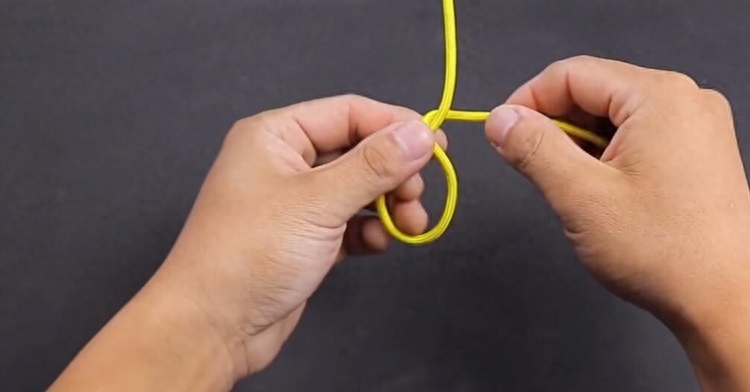 3.用右手把绳圈向左扭一下,形成交叉形状。