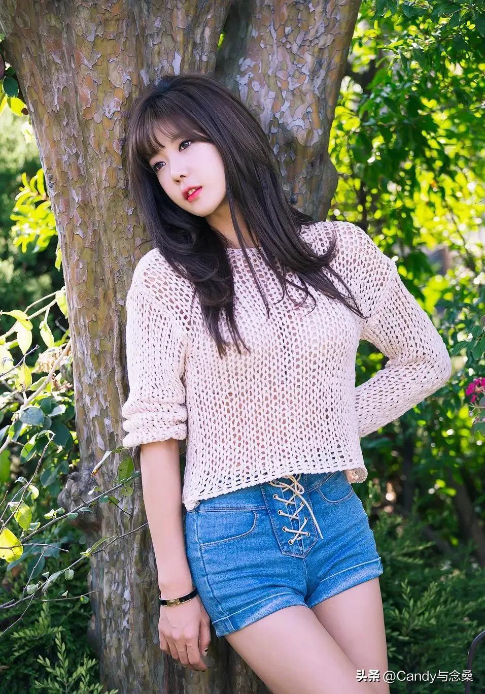 许允美有一张清纯的脸,穿着简单的毛衣牛仔裤时,你会想到她是性感的车模吗?