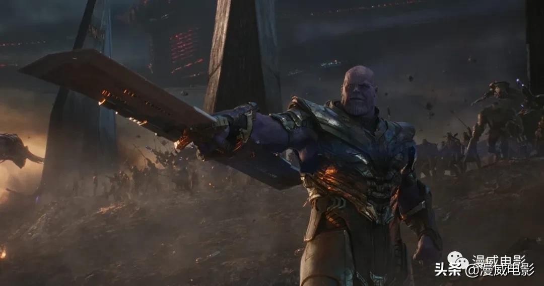 在《复联4》时,灭霸的武器砍破了美国队长的振金盾牌。