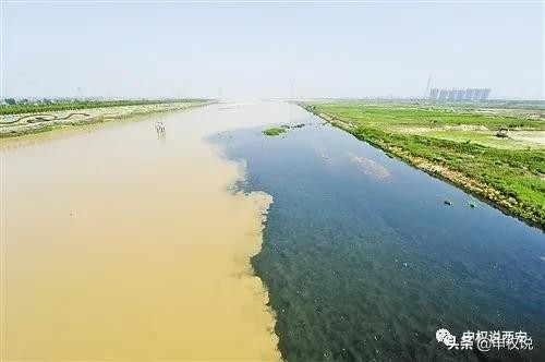 治理前皂河水流入渭河时的景象,黑色的污水和黄色的渭水呈鲜明对比