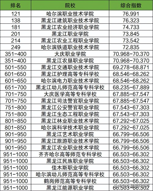 黑龙江专科学校排名分数线一览表(含前十名,2024参考)