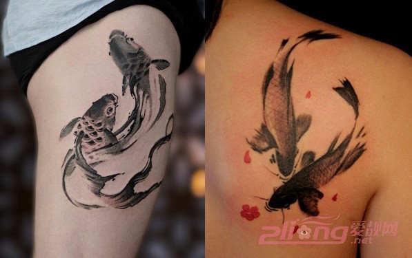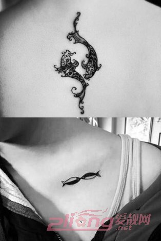 只在身上纹一条鱼,那条鱼可能太孤单,两条鱼在一起,才能成双成对,寓意完满。两条鱼互相畅游的图案,很灵动可爱;两条鱼亲吻在一起,很亲密甜蜜。