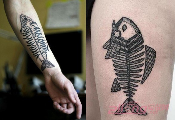 相比起其他风格的鱼纹身,鱼骨纹身显然是少见的,但它的独特让人无法忽视。鱼骨纹身拥有完整的鱼的心态,不同的是它的身体是由骨头组成的,突出一种空隙不饱和感,有意思的是,你可以使用各种不同的图案去充当鱼骨,例如:英文字、树枝、叶子等等,由此可见,鱼骨纹身可以是充满创意,不脱俗套的。