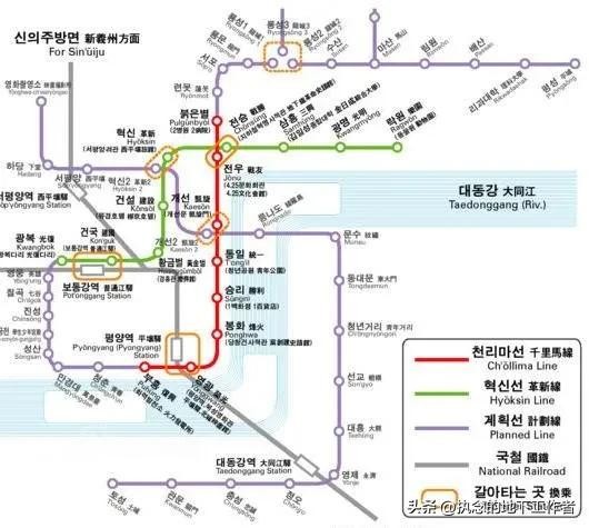 平壤地铁现有南北向的“千里马线”和东西向的“革新线”两条线路,这两条线路的命名便充满了对未来的憧憬与对革命的坚定信仰。而车站的命名更是别出心裁,每一个名字都仿佛是一部革命史诗的缩影,让人仿佛置身于那段峥嵘岁月之中。