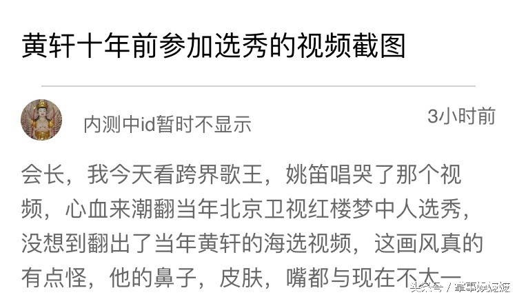 网爆黄轩十年前参加选秀的视频截图,鼻子和嘴不一样被质疑整容