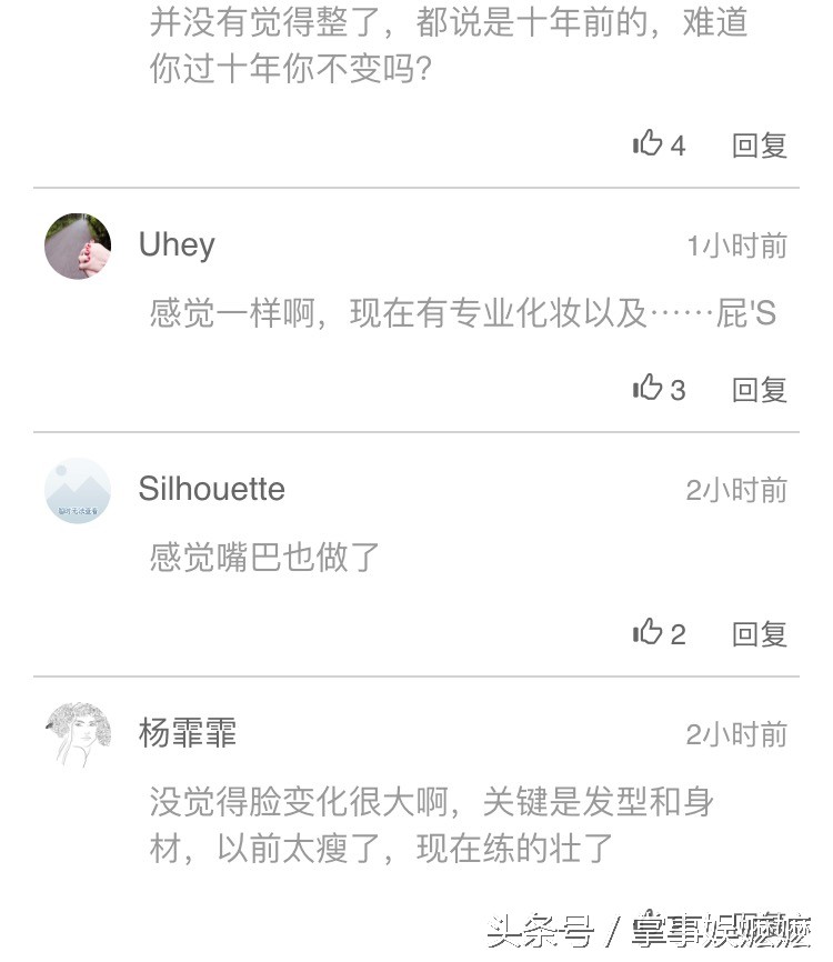 看到照片后的网友对于黄轩有没有整容产生了争议,有人觉得嘴巴也有动过。但是大部分的人觉得,是发型和身材导致的变化,现在健身练的壮了。毕竟十年的时间,一个人的样子也是会产生很多变化的。
