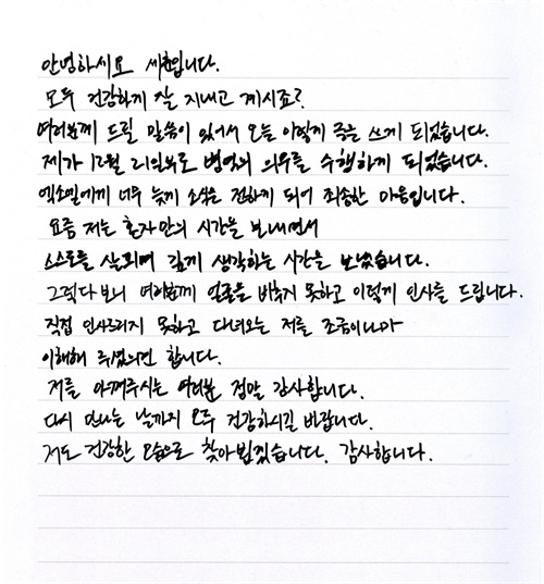世勋13日在粉丝社群平台发文,亲自宣布即将在12日入伍,他以手写信写下:「大家过得还好吗?今天有想告知大家的事,所以写下了这封信,我即将在12月入伍服役,很抱歉这么晚才告诉EXO-L们。」接着表示「我最近一边独处,一边审视自己。因此没有机会与各位见面,所以才用这样的方式问候大家,希望大家能够理解」。