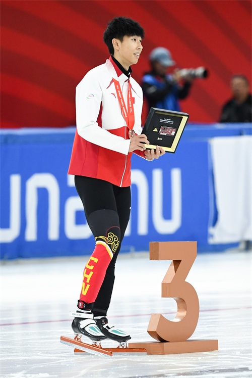 12月7日,中国选手孙龙在颁奖仪式上。 新华社记者 鞠焕宗 摄