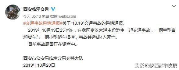 西安昨晚发生一起交通事故 货车与轿车相撞 致4人死亡