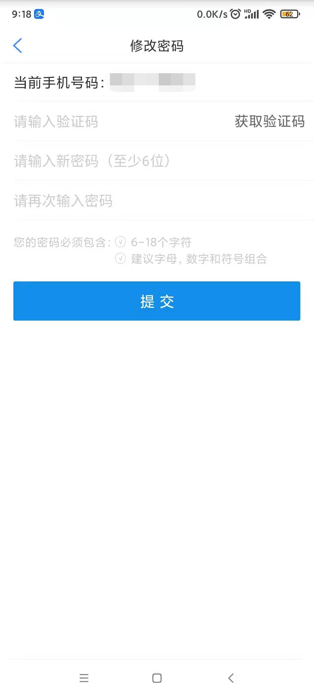 第三步,获取验证码,填入验证码,输入新的密码提交即可修改完成。