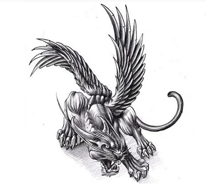 《山海经·海内北经》记载:穷奇外貌像老虎,身形似牛,长有一双翅膀。性情凶狠,喜欢吃人。可布天下水族,行云布雨,百毒不侵。