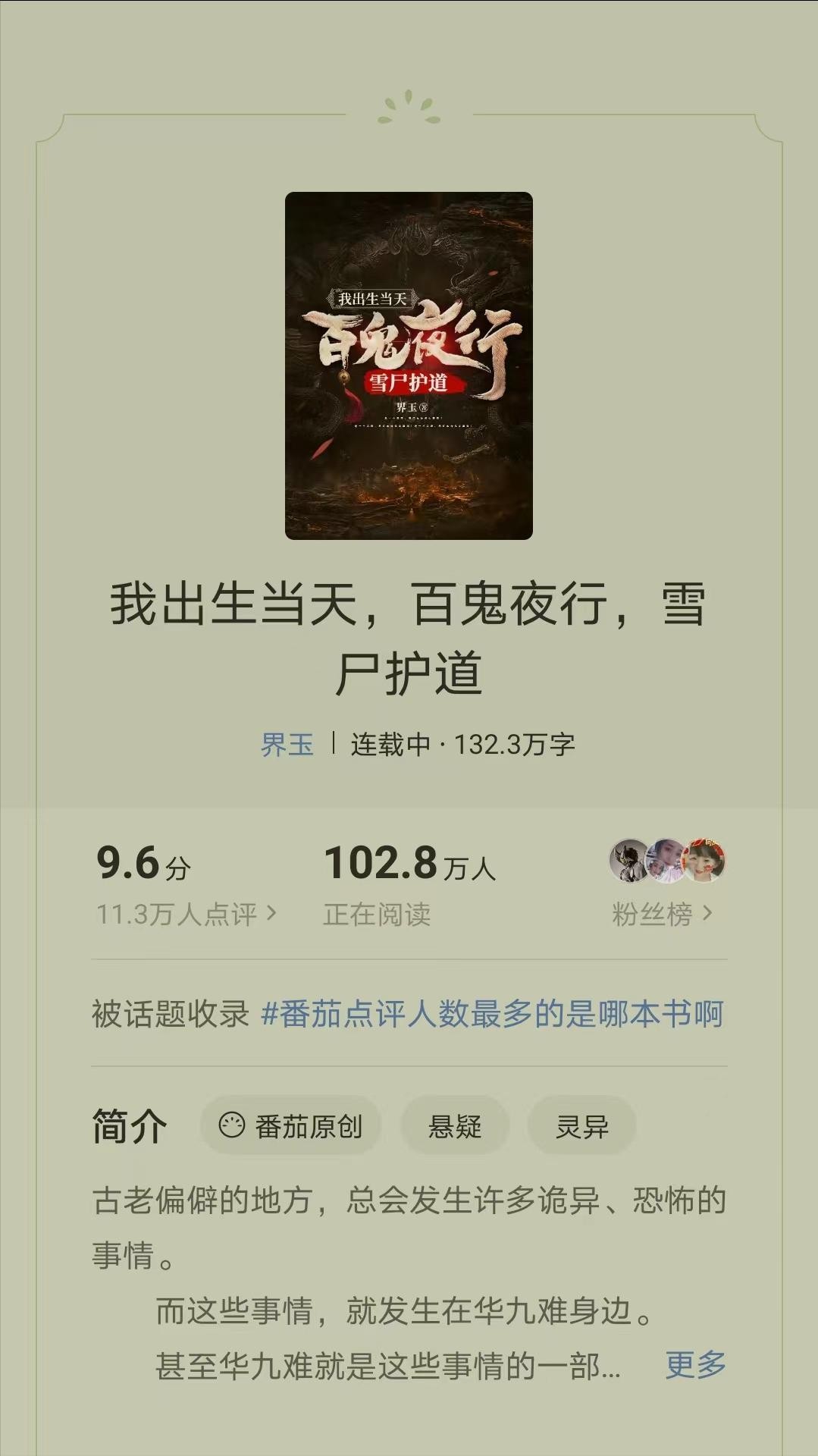 和你们一样,我刚看到这个书名的时候,还以为这是一本极端惊悚的小说,毕竟主角还没出生就被硬塞进了尸体肚子里,而且前几章上来就是百鬼争食的大场面,但后边儿他就变了,家仙是逗比,百鬼不正经,完全颠覆了各种固有形象。但是有一说一,这本小说他是真的接地气,就像是表哥喝多了酒给你讲他们村儿发生的事儿一样。
