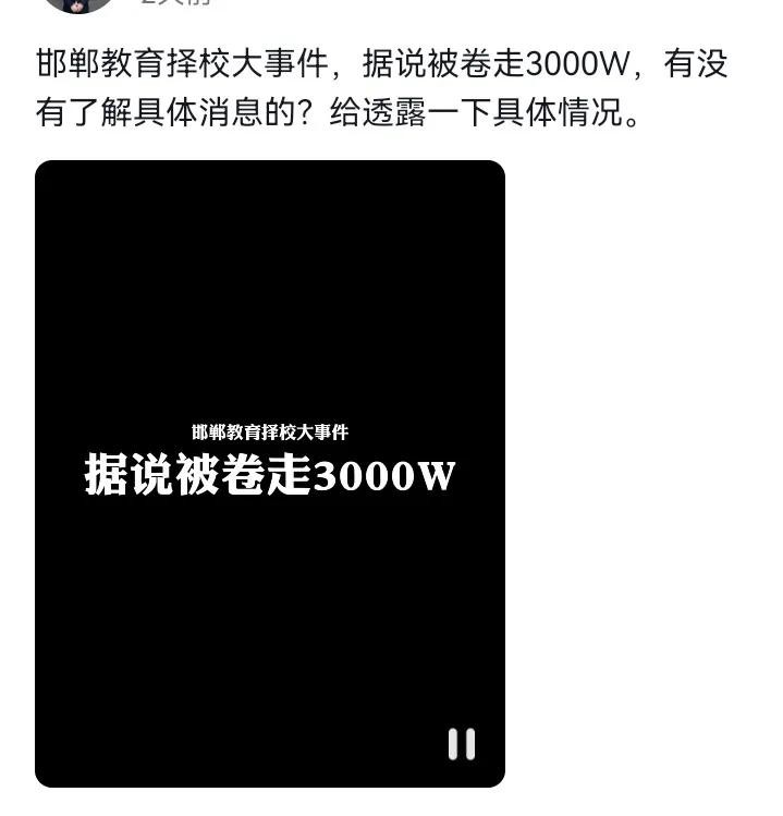 上周日,邯郸管上学案发生了三起恶性连锁事件,一个姓李的收了将近二百人上育华的钱,每个人三年学费带进门费数万!最后跑了!钱财涉及千万元。