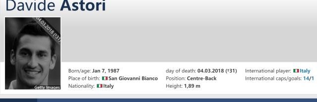 佛罗伦萨俱乐部在官方网站发布公告称,队长阿斯托里不幸去世,终年31岁。出于对逝者和亲人的尊重,俱乐部方面没有公布更多细节信息。据意大利媒体的报道,阿斯托里是在睡梦中离世的,他的遗体在乌迪内斯的酒店内被发现,原因可能是心脏病突发。