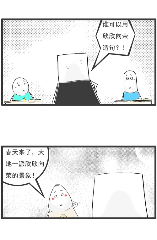 老师让我们用欣欣向荣这个成语造句,搞笑漫画