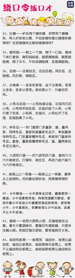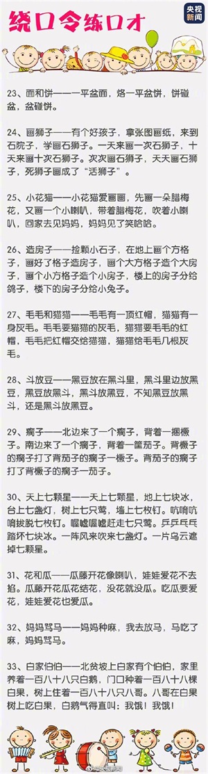 纸狮子是死狮子,石狮子不能撕,要想说清这几个字,读准四十石死撕 ②白石白又滑,搬来白石搭白塔。