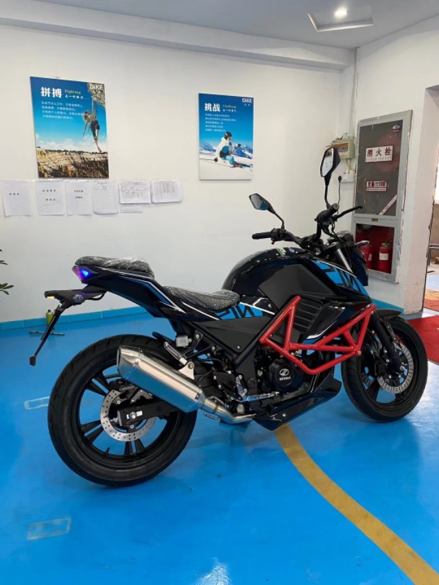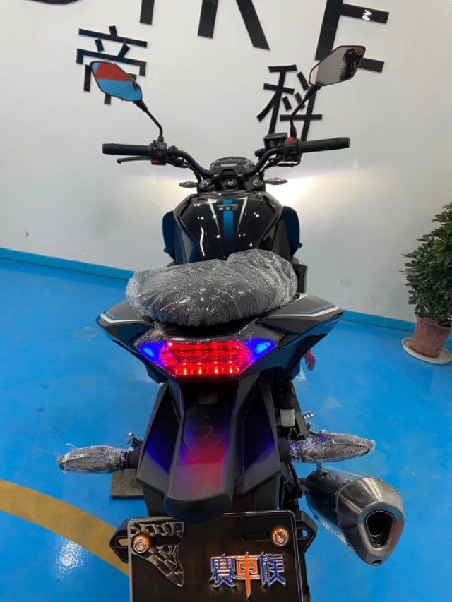 今天给大家简单的一款枭风九号。200cc~400cc枭风九号国四电喷,LED大灯搭载宗申发动机,天蝎排气,前轮110后轮150,前后蝶刹,液晶仪表,时速140 150,双人连坐,前后座高750/900mm。