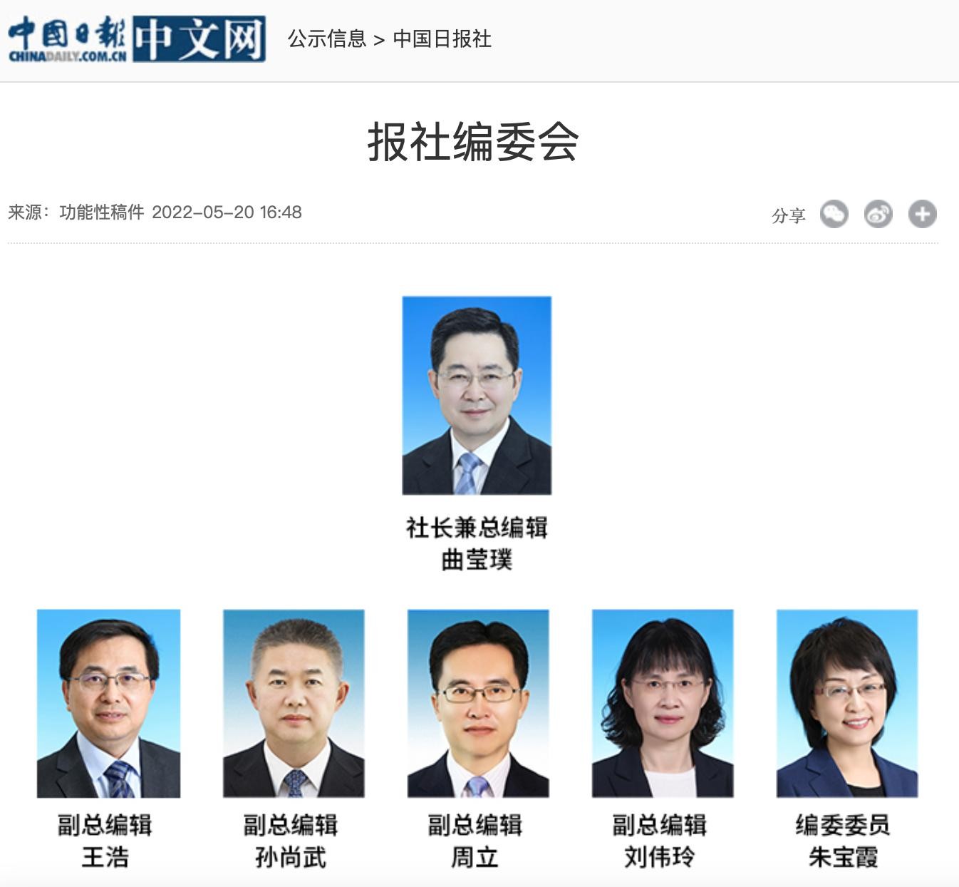 据中国日报网站显示,曲莹璞已任中国日报社社长兼总编辑。