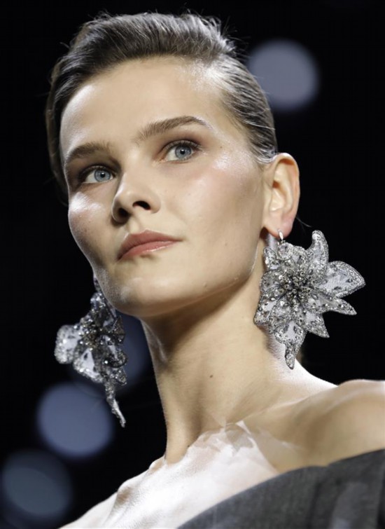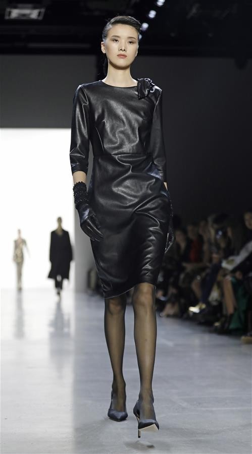 新华社照片,外代,2019年2月8日 (外代二线)纽约时装周——Badgley Mischka品牌时装秀 2月7日,在美国纽约时装周上,模特展示Badgley Mischka品牌的新款时装。 新华社/欧新
