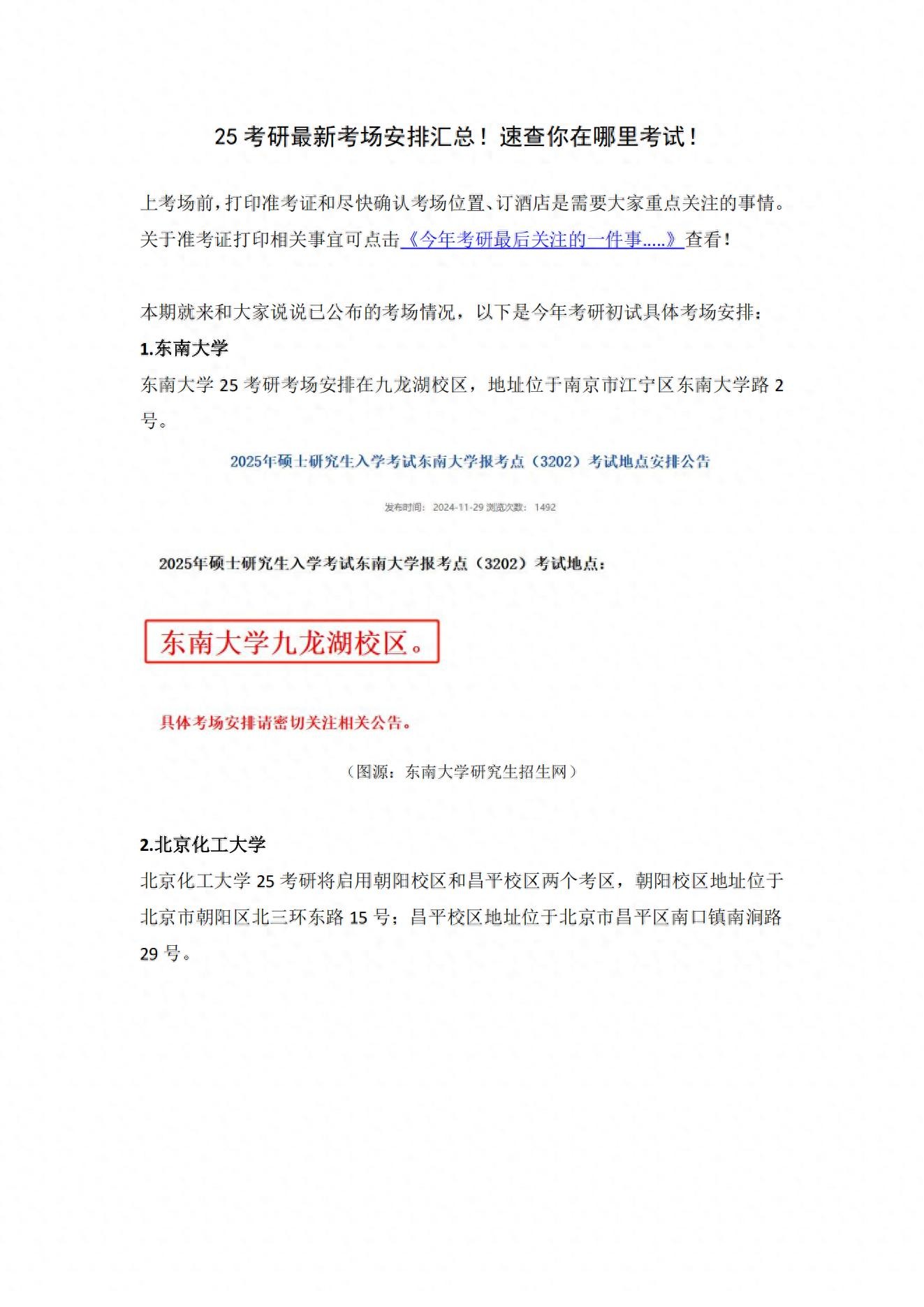 25考研最新考场安排汇总!速查!