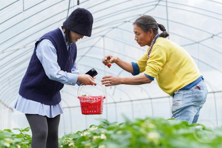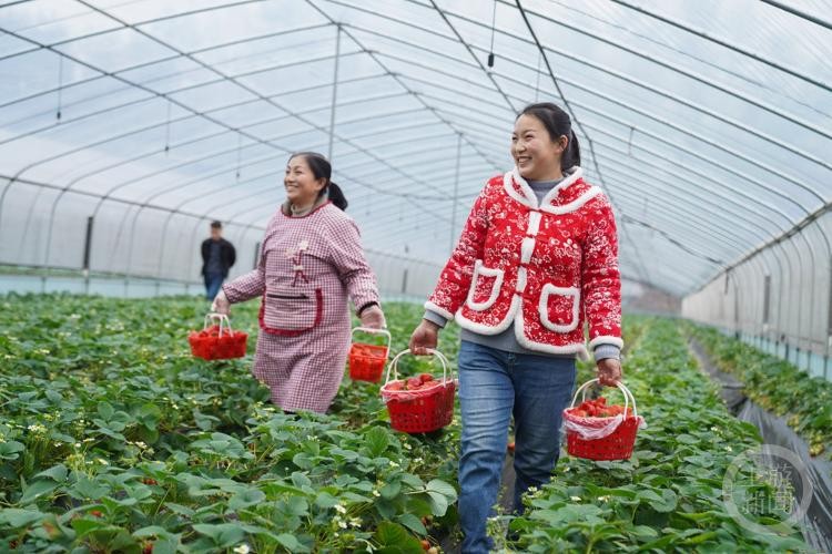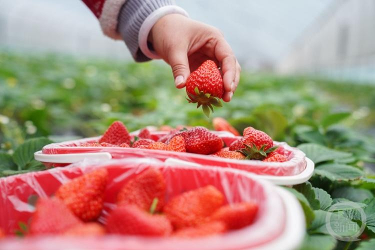 春节前夕,北碚区多个草莓种植户抢抓节日商机,采摘草莓供应节日市场,丰富春节水果品种,助力乡村产业富民增收。