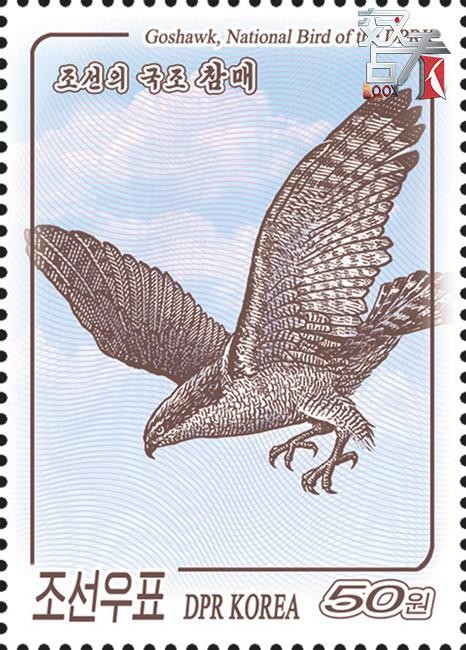 (朝鲜发行的苍鹰邮票)