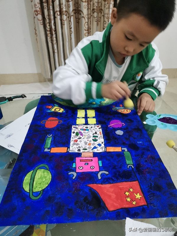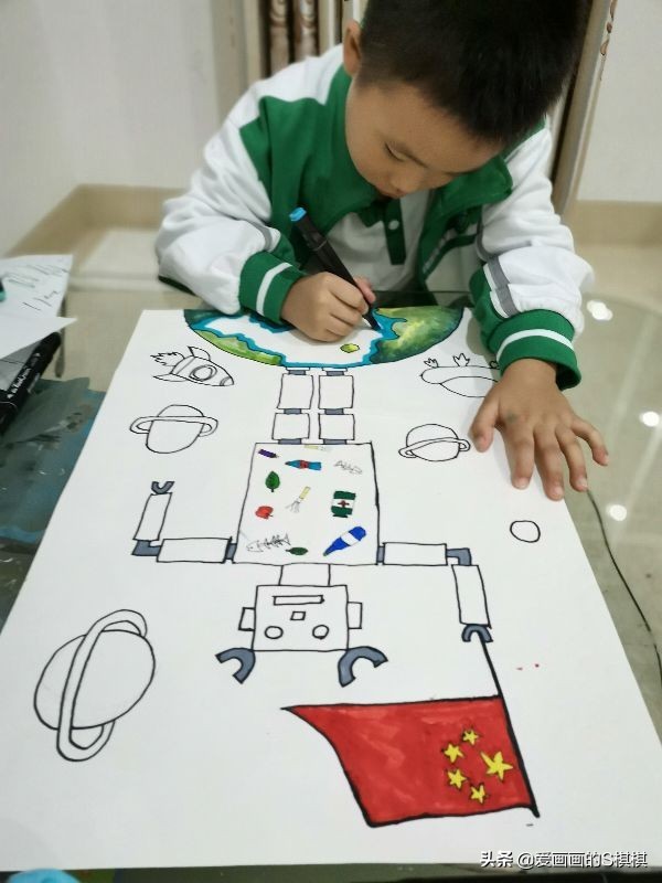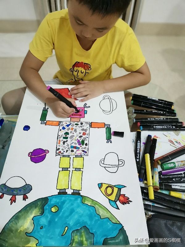 小学生主题绘画《科技主题画》未来科技儿童画范画,彩色颜料画