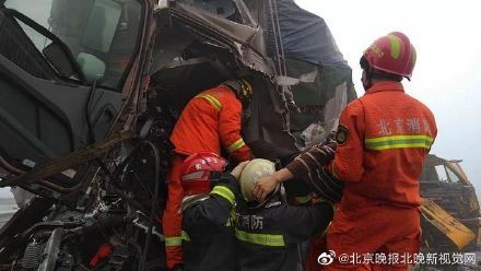 通州三辆大货车连环追尾,消防员徒手破拆成功救人