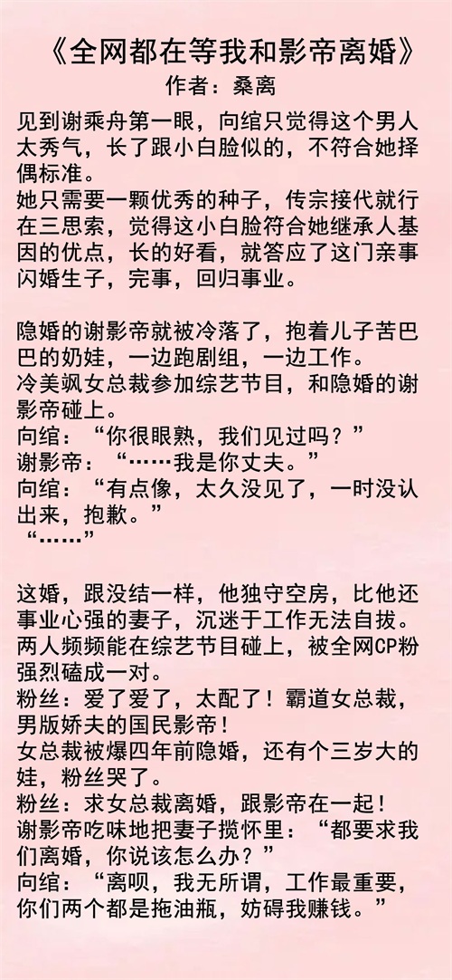 第三本《全网都在等我和影帝离婚》作者:桑离