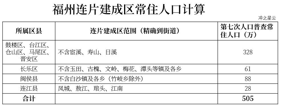 最后,分别计算一下福建省内超大城市厦门-泉州-漳州组合体、以及特大城市福州的连片建成区人口规模: