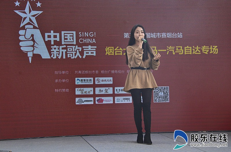 选手王彦超演唱《往事随风》 伴着春日的脚步,第三季《中国新歌声》烟台城市赛已进行到第六场海选。3月31日下午,选手们齐聚烟台大成金马一汽马自达4S店,畅怀高歌,唱出追梦者的声音。(记者 王向荣)