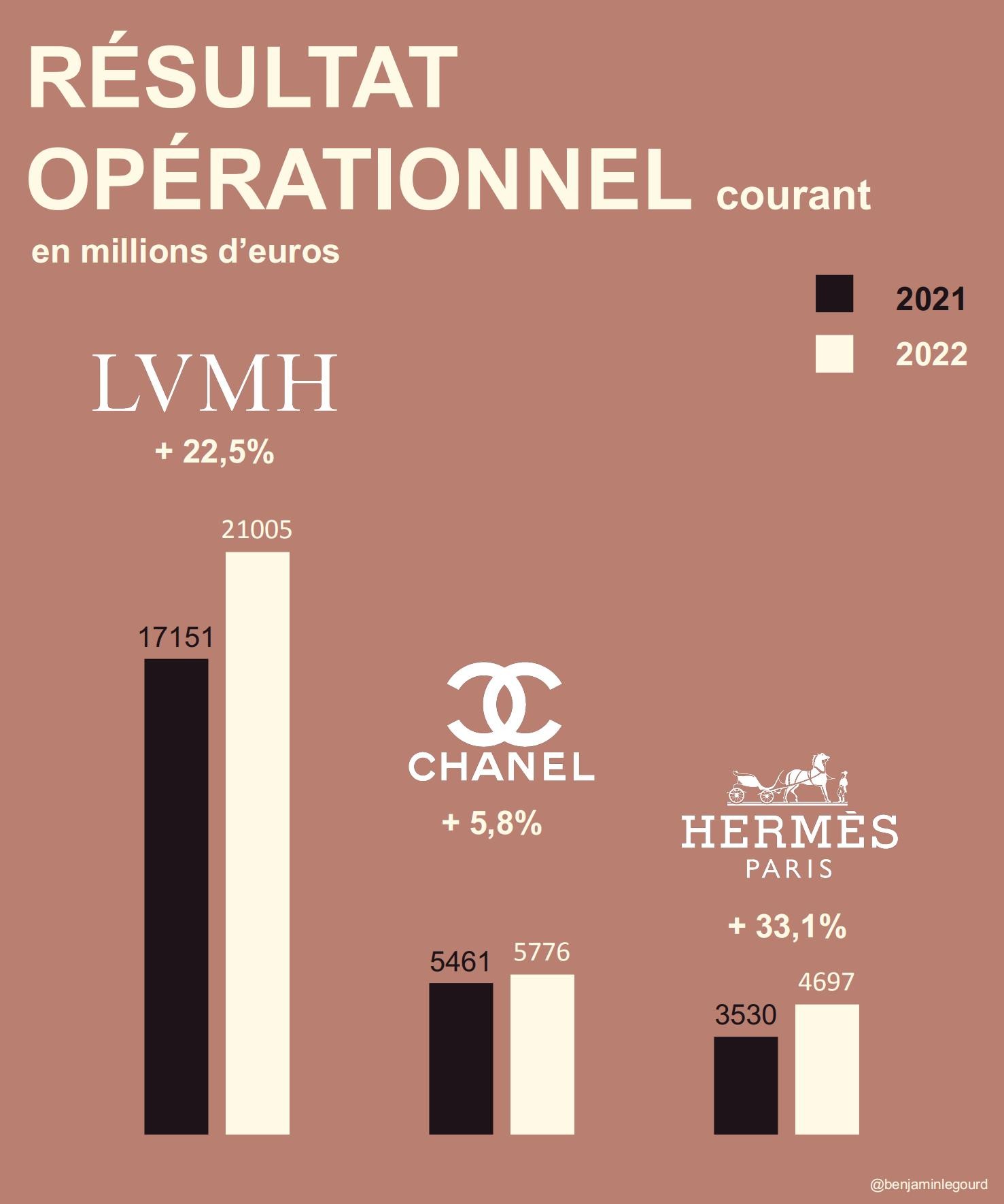 LVMH,爱马仕,香奈儿,三大奢侈品集团,LVMH在营业额上是绝对的王者,利润总额也是高的惊人。增长率就不是那么乐观了!