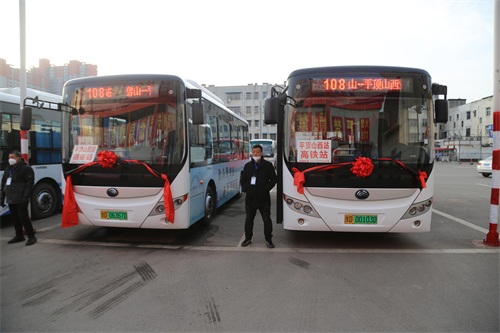 1月17日上午,鲁山至平顶山西站(高铁站)108路公交车通车仪式举行,为群众送上新春的一份大礼。