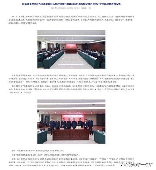 近日东华理工大学与九江市柴桑区人民政府共建北斗应用与低空经济现代产业学院项目签约仪式在九江举行,未来5年,学院计划培养相关领域本科生、研究生超1000人。