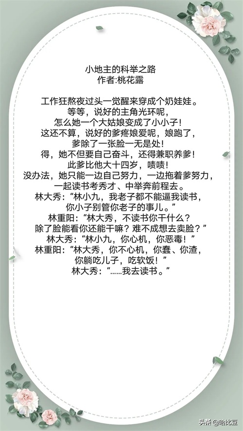 《小地主的科举之路》桃花露 229章 名校女老师,女穿男,带着亲爹一起考科举。