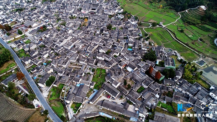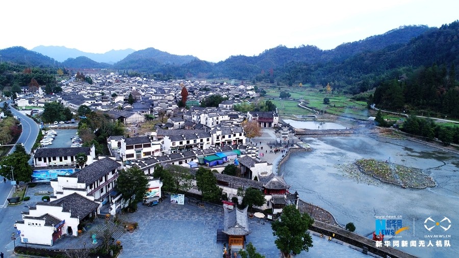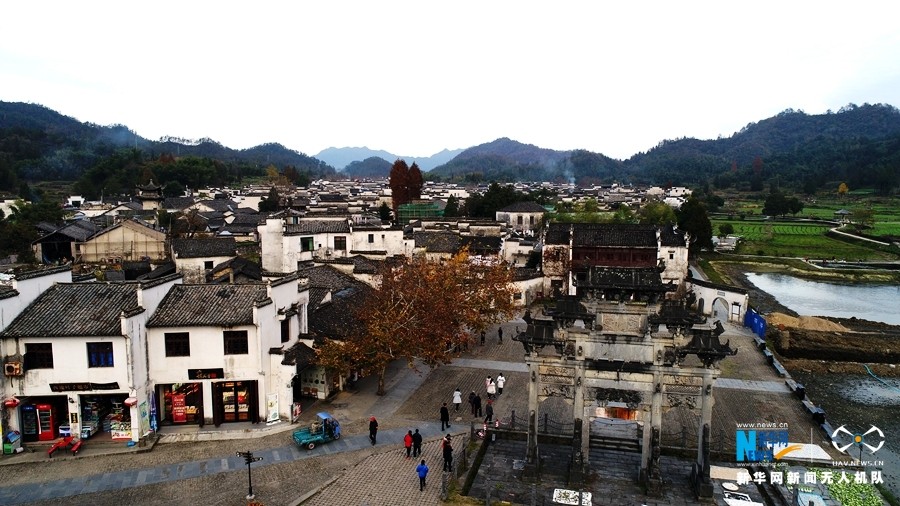 11月24日,新华网新闻无人机航拍到的中国十佳最具魅力名镇西递镇。