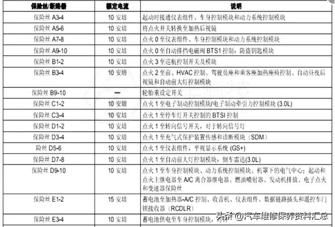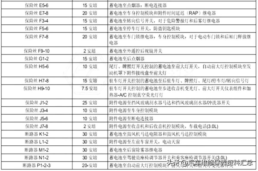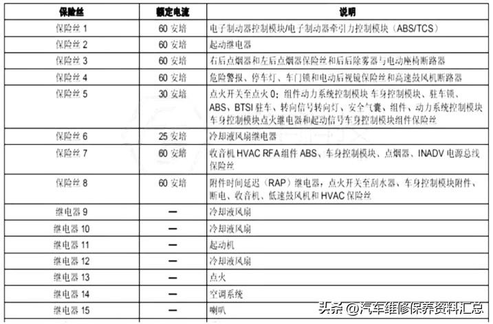 保险丝说明: