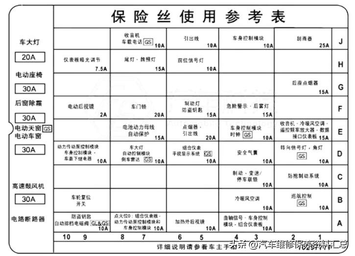 别克 君威 全车保险丝位置及说明
