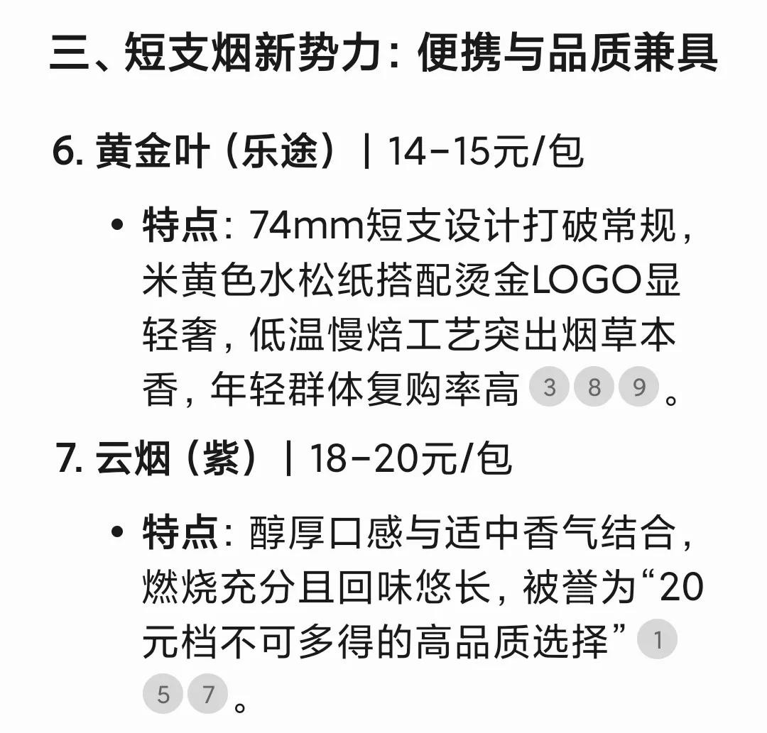 Deepseek盘点:烟民们好抽不贵的10种香烟,最贵才20元