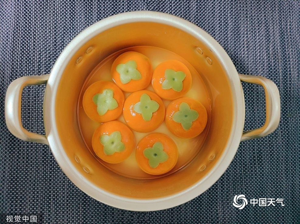 图为柿子造型汤圆,象征柿柿如意。(签约供稿人/视觉中国/版权图片 来源视觉中国)