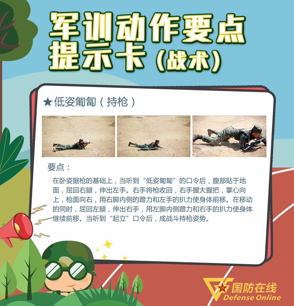 随着学校陆续开学,学生军训工作同步展开,在全国各地的军训场上,到处都是挥洒汗水的迷彩身影。这个军训季,国防在线客户端特别推出“军训动作要点提示卡”系列策划,为你带来最规范的军训动作演示。