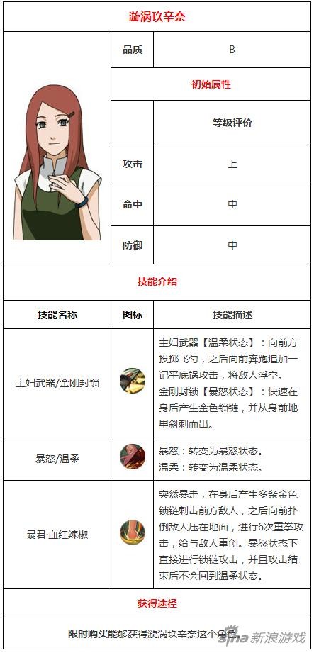 火影忍者手游漩涡玖辛奈技能属性图鉴
