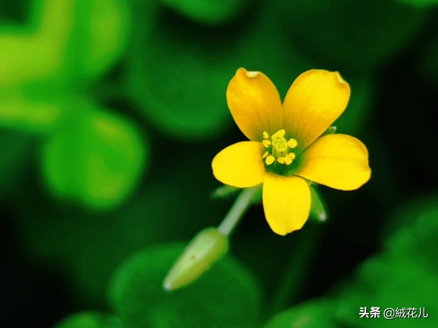 黄花酢浆草别称百慕大酢浆草,通常有三片叶子,花儿是黄色的,偶见四片叶子的称之为幸运草。