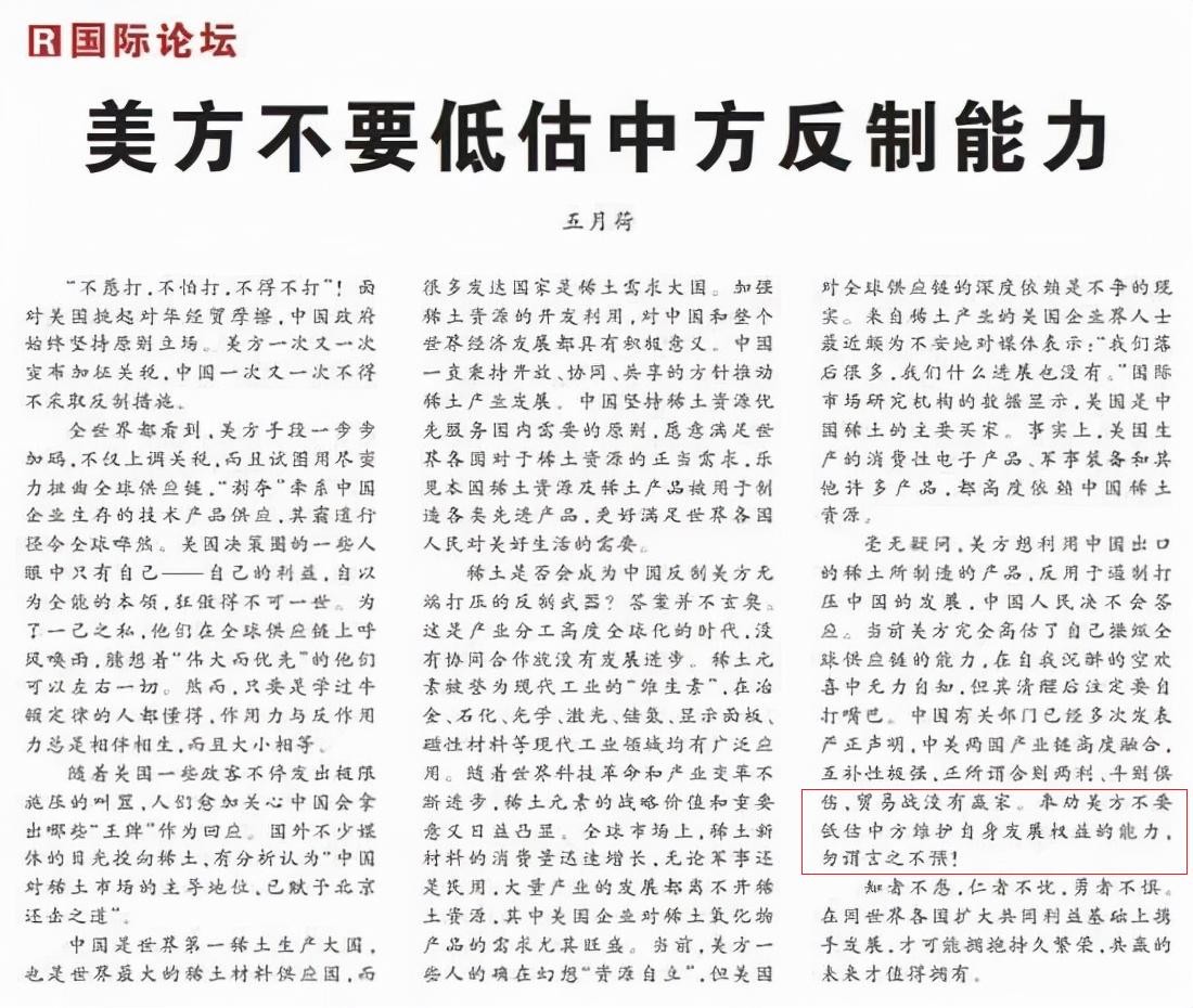 比如说,2019年,在《美方不要低估中方反制能力》这篇文稿中,我国再一次说出这话。