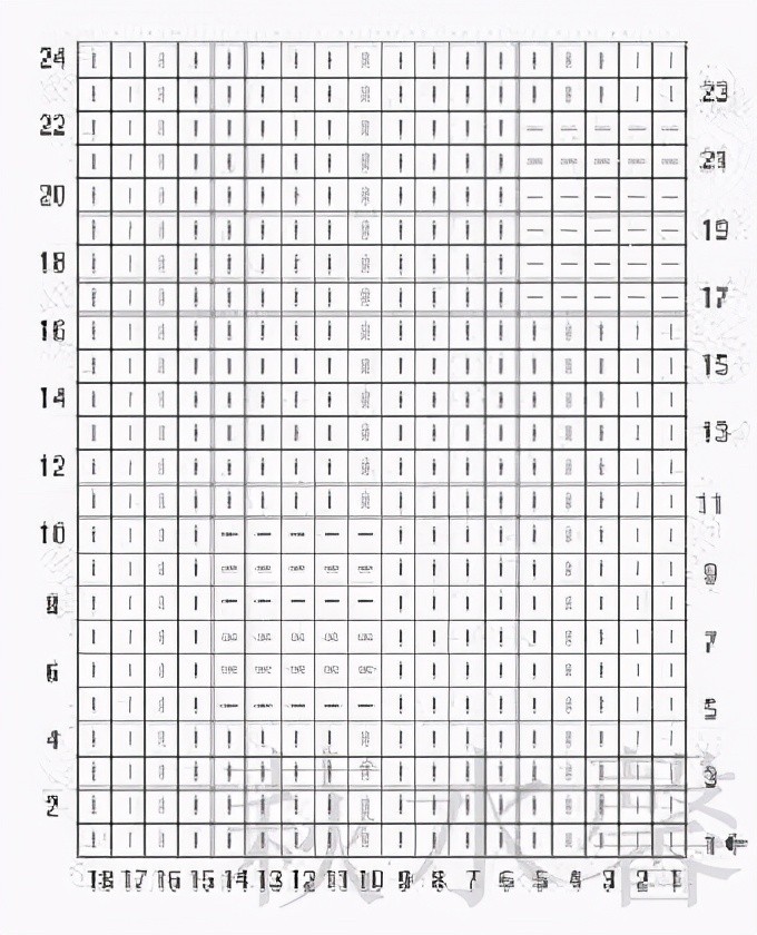 小图里面,一小格代表一针,小短竖线表示下针(有的地儿也叫正针),小短横线表示上针(有的地儿叫反针)