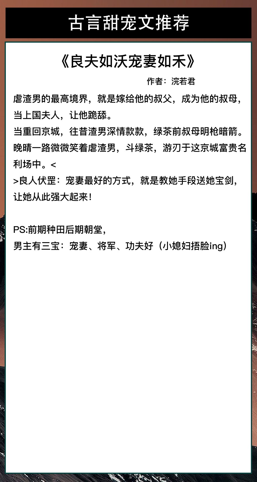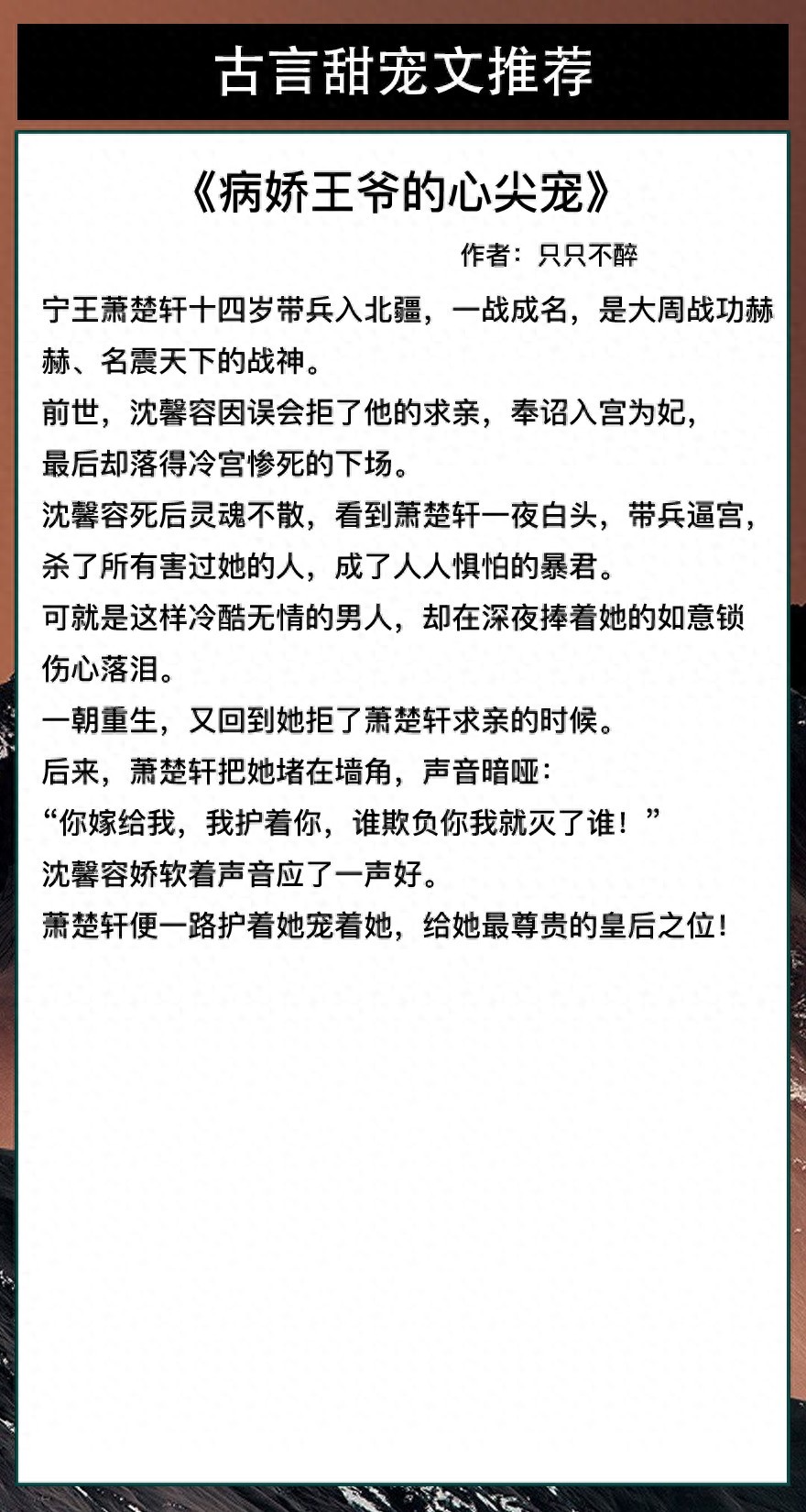 喜欢的亲们帮忙点个赞,留言评论~谢谢!!ლ(°◕‵ƹ′◕ლ)。爱你们哟。关注我每天有不同的精彩小说推送哦!另:图片背景素材来源于网络,侵删致歉!